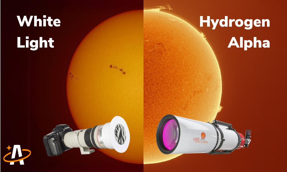 Het verschil tussen een witlichtfilter en een H-alpha filter - Foto: Agena Astro