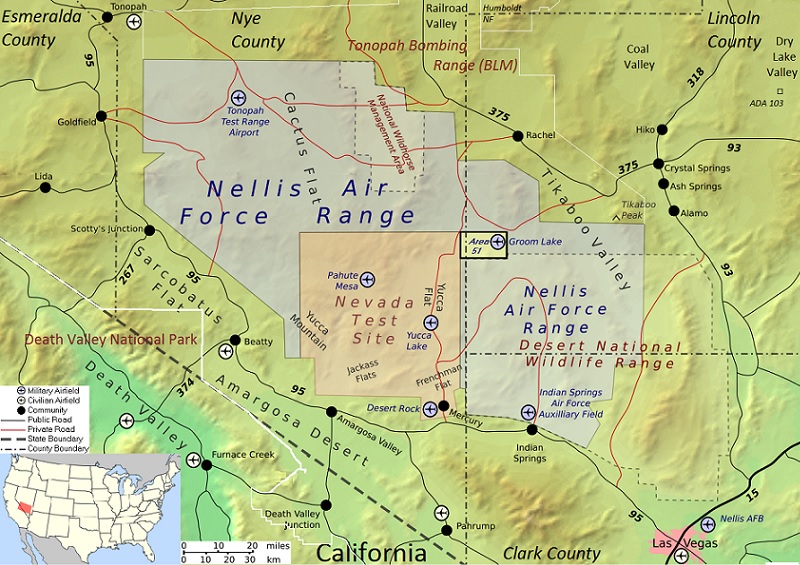 De benaming ‘Area 51’ is afkomstig van het referentienummer van het vak waarin dit gebied op de kaart terug te vinden is. Deze naam werd vooral door de Amerikaanse inlichtingendienst CIA gebruikt tijdens de oorlog met Vietnam toen dit gebied gebruikt werd als testfaciliteit voor geheime spionagevliegtuigen. Terwijl het originele Area 51 gebied een rechthoekige vorm had van 9,7 kilometer bij 16,1 kilometer is het huidige gebied maar liefst 37 kilometer bij 40 kilometer groot. Deze regio wordt ook vaak de ‘Groom box’ genoemd en beschikt over een streng bewaakt luchtruim waarin niet mag gevlogen worden. Dit gebied is ook verbonden met de Nevada Test Site dat door de United States Department of Energy in het verleden uitgebreid gebruikt werd voor het uitvoeren van kernproeven. Ten noorden van Area 51 bevindt zich dan weer het zogeheten ‘Groom Lake’ dat een grote zoutvlakte is die in het verleden werd gebruikt als Nellis Bombing Range Test Site. Area 51 zelf ziet er heel verlaten en levenloos uit. Het gebied bestaat uit bergkammen en vlaktes waarop nauwelijks iets groet.