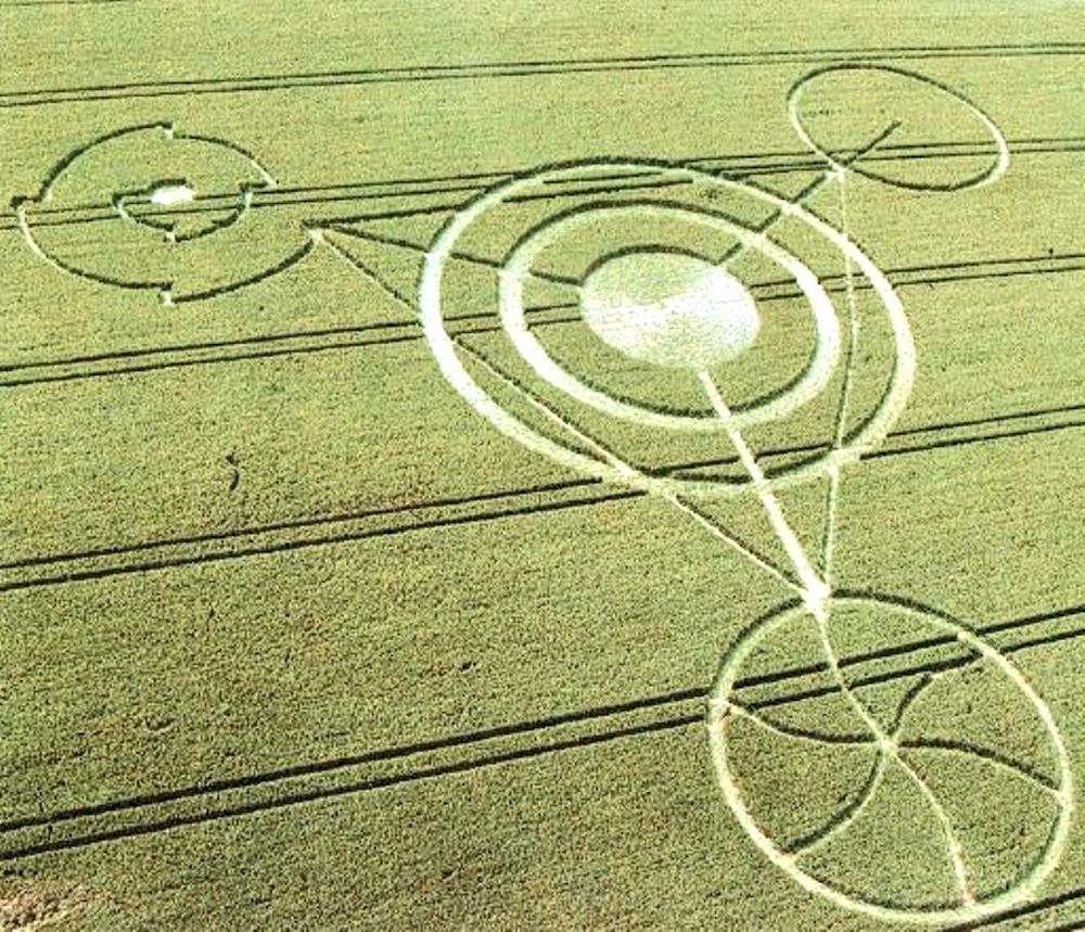 In 2002 verscheen bij Crabwood Farm een graancirkel die een gezicht leek af te beelden, naast een schijfvormig patroon dat werd geïnterpreteerd als een gecodeerde boodschap. Deze formatie werd bijzonder populair binnen UFO- en complotkringen, omdat het gezicht door velen als buitenaards werd geïnterpreteerd. De boodschap bleek echter eenvoudig te ontcijferen met een binaire ASCII-code, iets wat goed binnen menselijke kennis valt. Kunstenaars en onderzoekers hebben aangetoond dat zowel het portretachtige ontwerp als de codering technisch uitvoerbaar zijn met bekende methoden. De Crabwood-formatie wordt gezien als een voorbeeld van hoe graancirkels bewust inspelen op populaire buitenaardse beeldtaal.