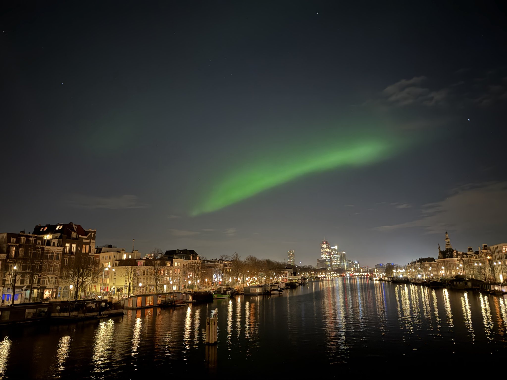 Zelfs vanuit het fel verlichte Amsterdam was het noorderlicht mooi zichtbaar - Foto: Johannes-Harm Hovinga