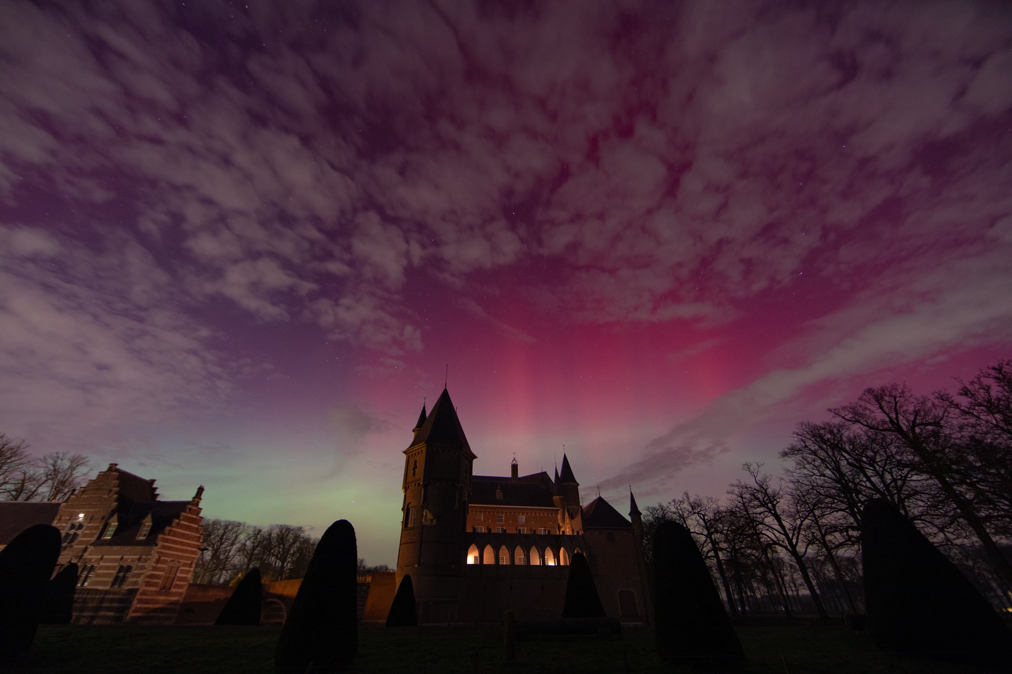 Noorderlicht boven het kasteel van Heeswijk, Nederland - Foto: Victor van Wulfen